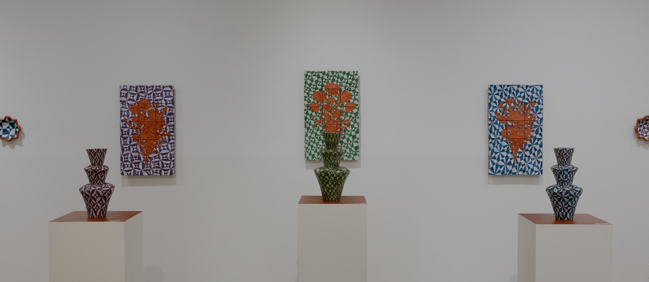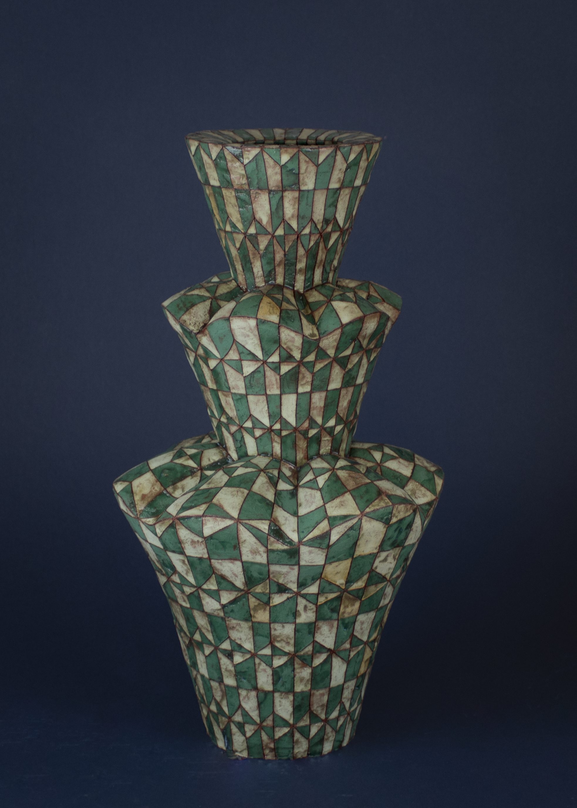 Jaden Estes Carlson is a contemporary ceramic artist based in Nebraska. Her sculptural ceramic work explores pattern and surface as systems of memory, informed by textiles, domestic histories, and architectural ornament. Through deliberate repetition and subtle deviation, Carlson investigates how form can hold personal and collective narratives. Her work considers ceramics as objects of presence, emphasizing material, scale, and surface as primary sites for contemplation.